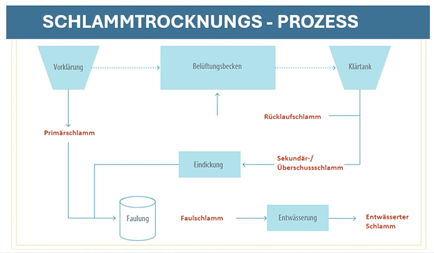 Schlamm wird schrittweise getrocknet und dann verwertet, entweder als Brennstoff oder als Dünger.