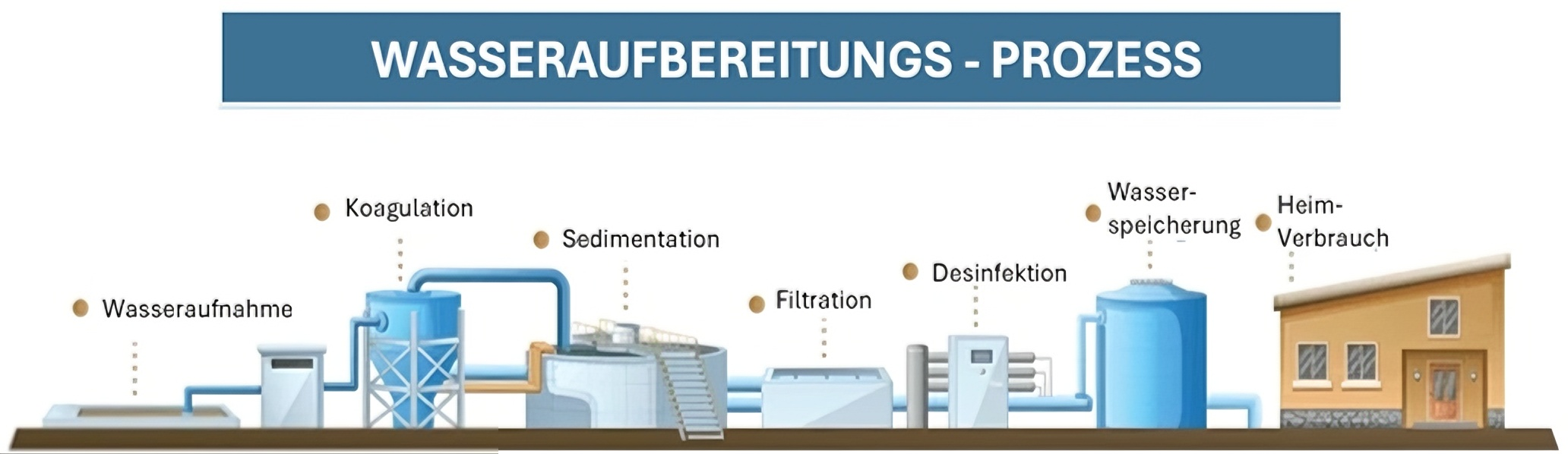 Wasser wird in biologischen und chemischen Schritten aufbereitet.